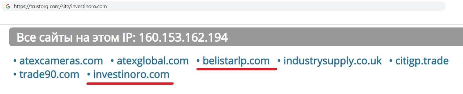 Фирма Investinoro находится на одном айпи с финансовыми разводилами Belistar. Данные жулики являются мошенниками на рынке форекс, которые нацелены на пенсионеров, так как они менее всего защищены от мошенников.
