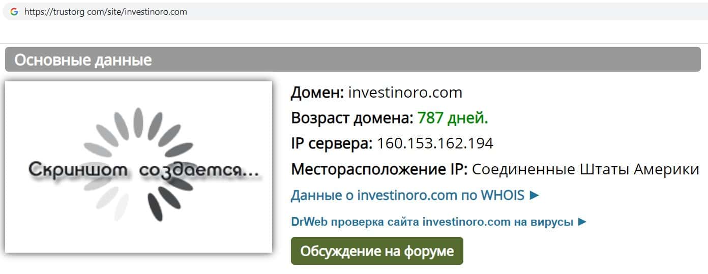 Мы проверили возраст компании кидал Investinoro через интернет ресурс "доверие в Сети". Оказалось, что фирма существует уже более двух лет, а число обманутых клиентов зв это время очень не маленькое.