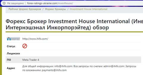 Информация о жуликах Инвестмент Хаус с сети интернет