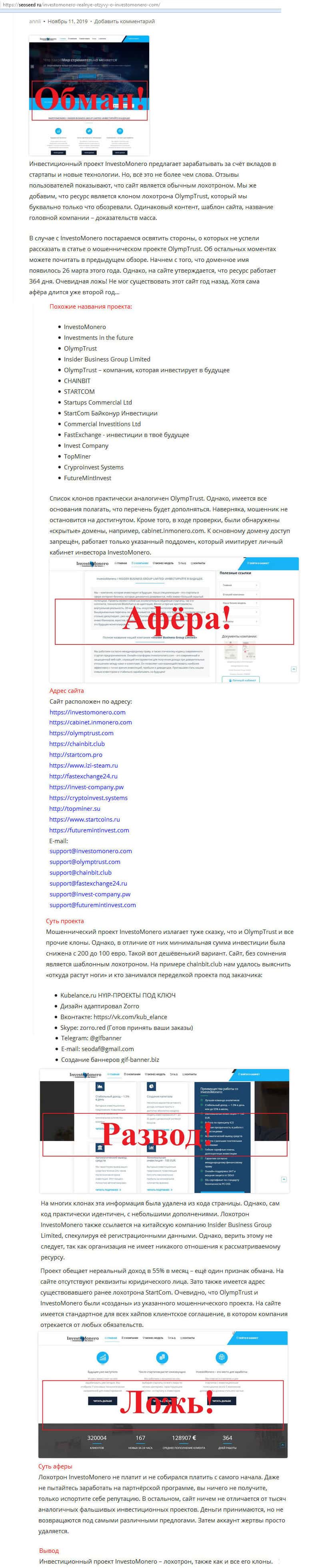 - Статья, описывающая суть лохотрона ИнвестоМонеро, взятая с сайта seoseed ru