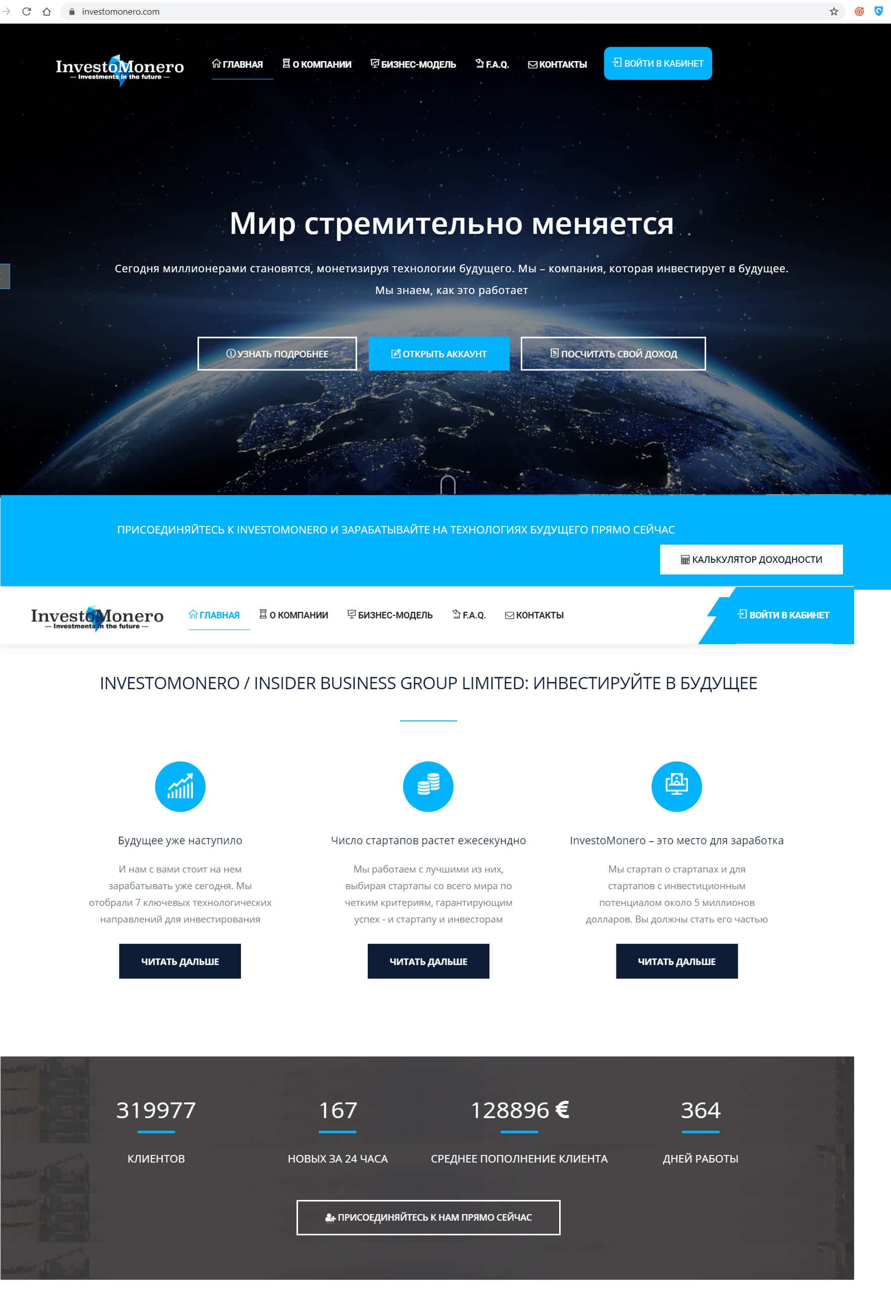 - Краткий обзор официального сайта конторы Инвесто Монеро