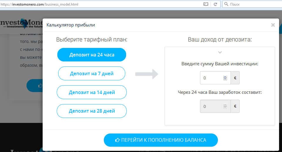 Бизнес-модель, предложенная на сайте InvestoMonero com
