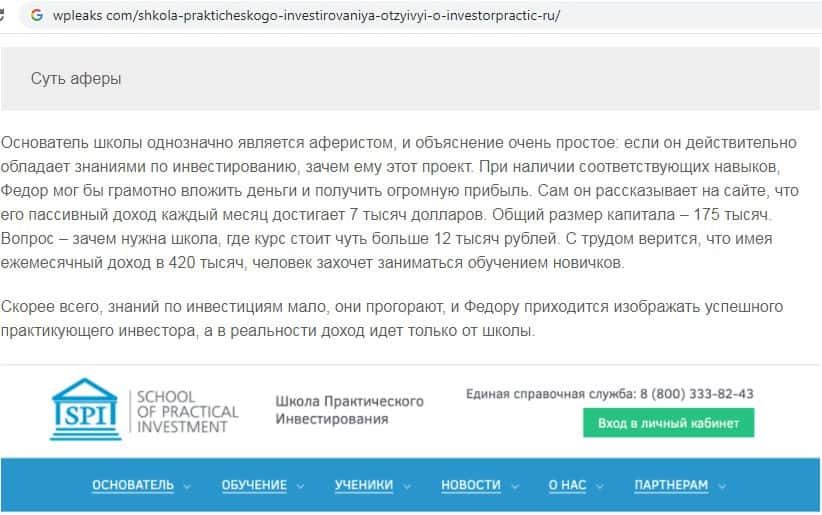 - Обзор мошеннического сайта псевдо школы инвестирования Инвестор Практик