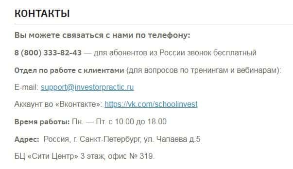 электронная почта - support@investorpractic ru