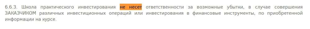 Также мошенники InvestorPractic Ru сняли с себя ответственность за ваши убытки. Если в результате полученных "знаний" вы попадете на деньги - это ваша проблема.