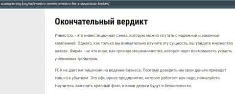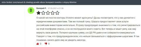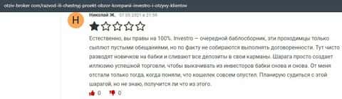 Далее указан отзыв от человека, который также считает, что контора Инвестро создан для того, чтобы выманивать деньги у клиентов. Причем они узнают об этом в последнюю очередь.