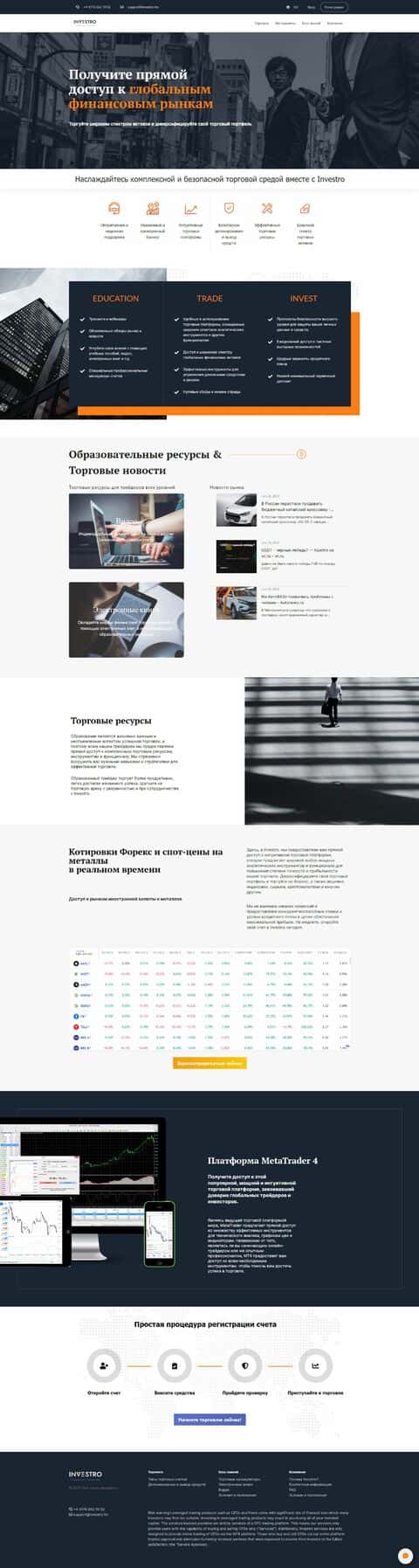 Далее представлен скриншот главной страницы брокерской форекс-конторы Инвестро с помощью которой они пытаются привлечь внимание пользователей и сделать из них жертв.