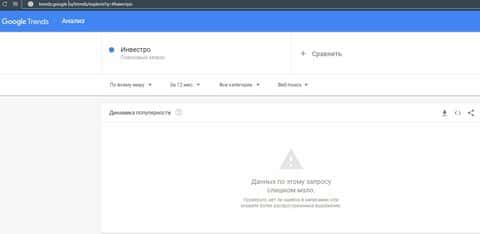 Запросы бренда "Инвестро" не популярный в поисковой системе Гугл, так как Гугл Трендс не нашел достаточного количества запросов.
