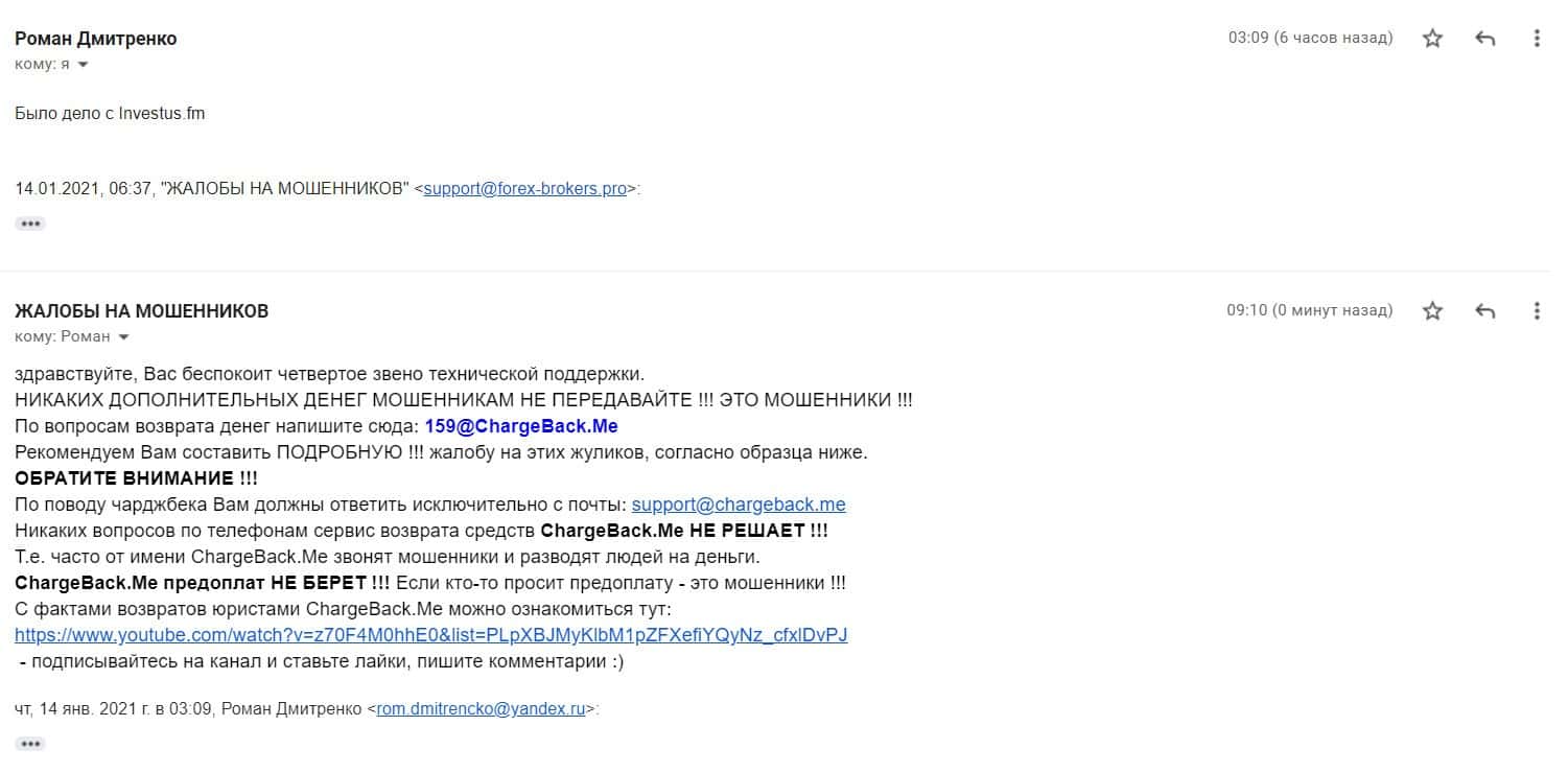 Если же наглые мошенники Инвестус Вас развели или хотели это сделать, то сообщите Ваш е-майл ниже, и мы при любых обстоятельствах с Вами установим контакт по электронной почте.