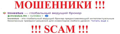 Investus - проект мошенников и аферистов, который предлагает неопытным пользователям интернета вложиться в финансовые торги. При этом их ждут разорение и разочарование, так как они связались с мошенниками, не имеющими ни чести, ни совести. Ни в коем случае не связывайтесь с Investus.