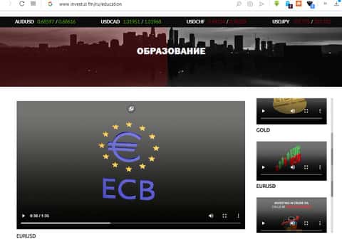 В описании типов счетов, предлагаемых компанией для открытия, имеется пункт "Обучающее видео". На самом деле это обучение представляет собой ряд ничего незначащих коротких видеороликов на английском языке.Восхитительная работа службы поддержки Investus