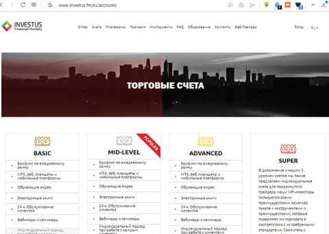 Данный брокер предлагает на выбор четыре различных типа счетов. Этими учетными записями являются Basic, Mid-level, Advanced и Super. Все они имеют одинаковые рычаги, функции помощи в торговле и видеоуроки. Короче говоря, все они имеют одинаковые функции друг с другом. Как такое может быть? Эти мошенники просто хотят поймать в ловушку как можно больше инвесторов.Образовательные программы для клиентов Инвестус