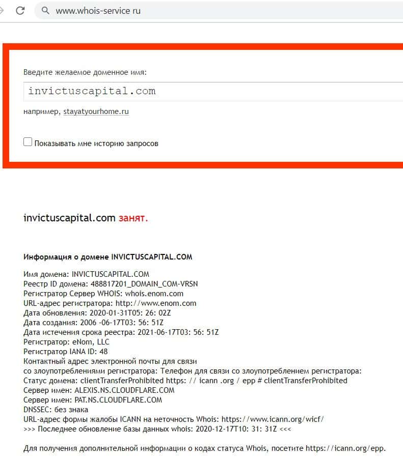 - Кому принадлежит доменное имя сайта invictuscapital com?