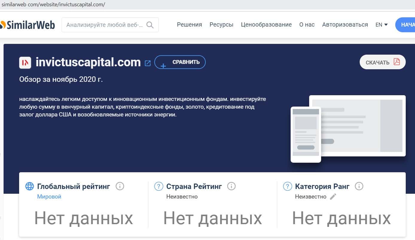 - Данные с сервиса similarweb о доменном имени invictuscapital com