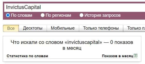 Название бренда "InvictusСapital" на английском языке пользователи искали в системе Гугл небольшое количество раз.