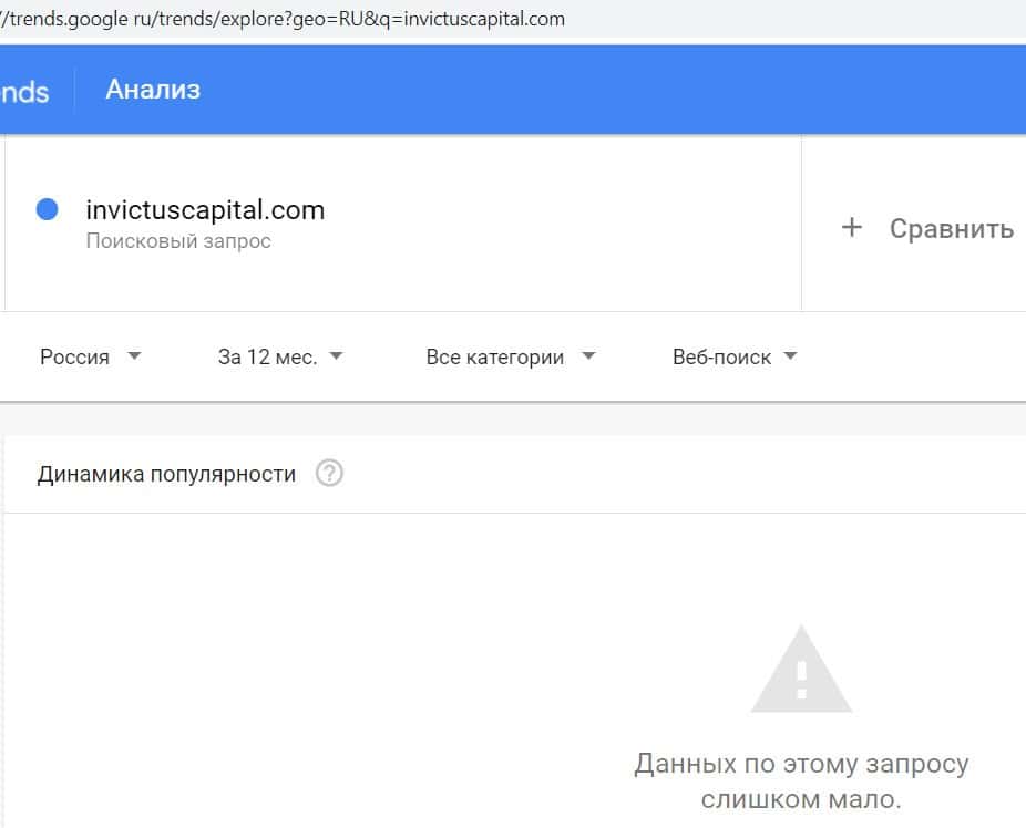 - Информация в поисковике Гугл Тренд по запросам бренда InvictusСapital