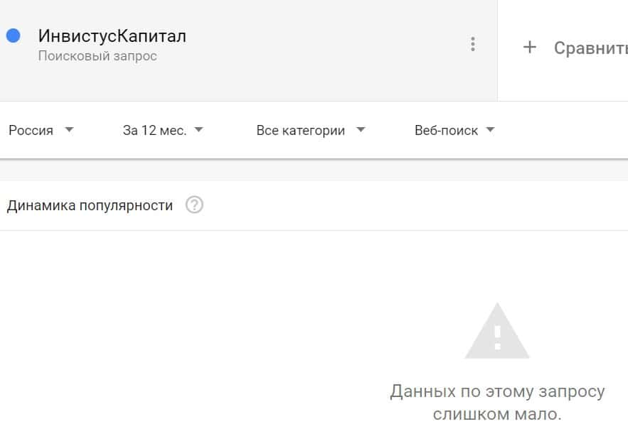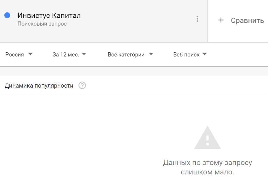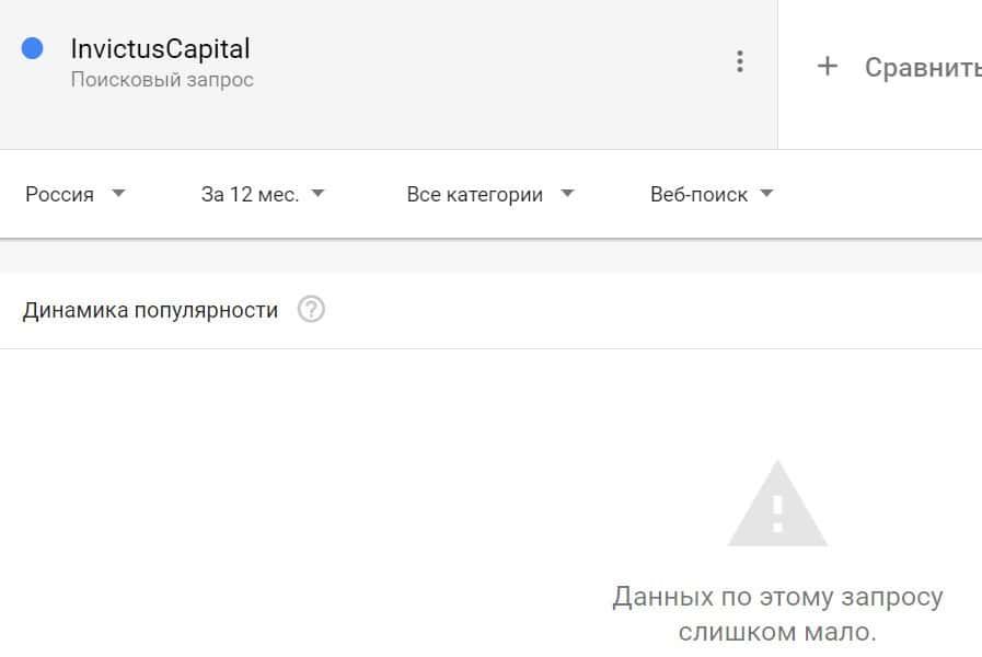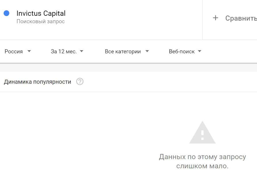 Проверка по названию бренда на английском языке с пробелом "Invictus Сapital" дала следующий результат: компанию искали крайне редко.