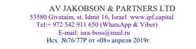 Из информации, которая публично представлена на официальном сайте лохотрона ИПФ Капитал, ими владеет некая израильская компания AV JAKOBSON & PARTNERS LTD.