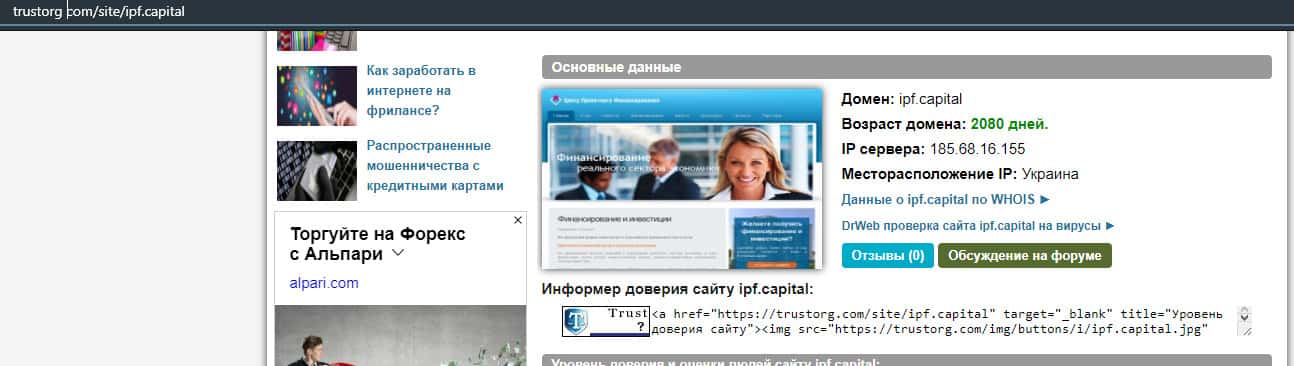 Исходя из информации на ресурсах по проверки доменов, сайт конторы IPF Capital создан уже давно, а эти мошенники просто взяли и купили данный домен.