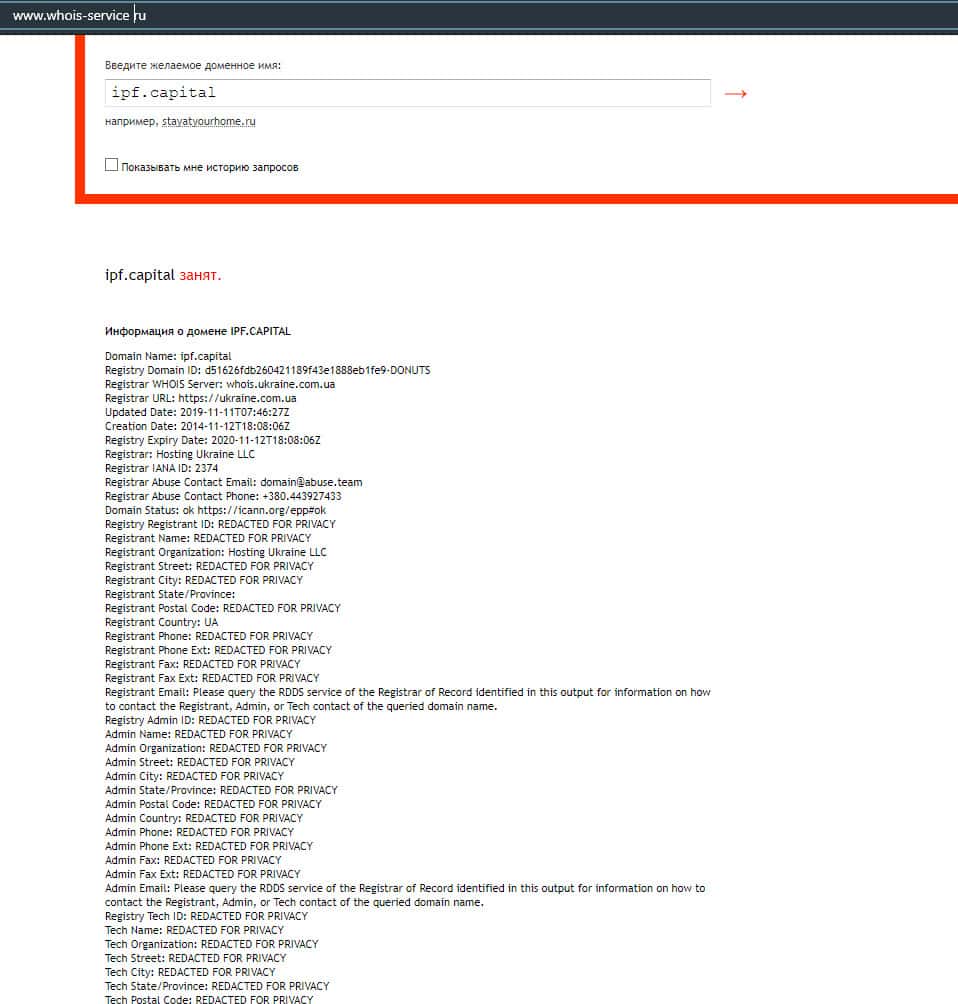 - Кто владеет доменом сайта ipf capital?