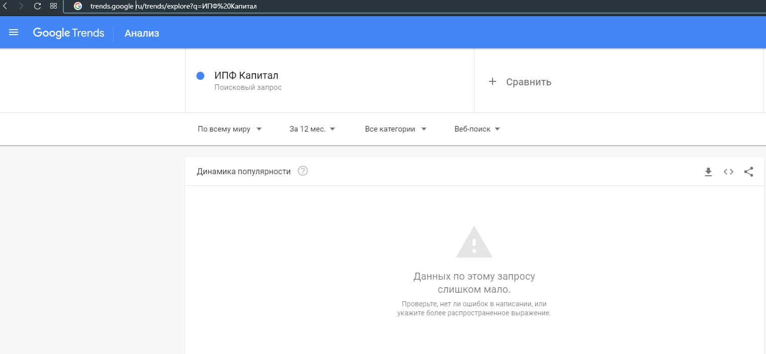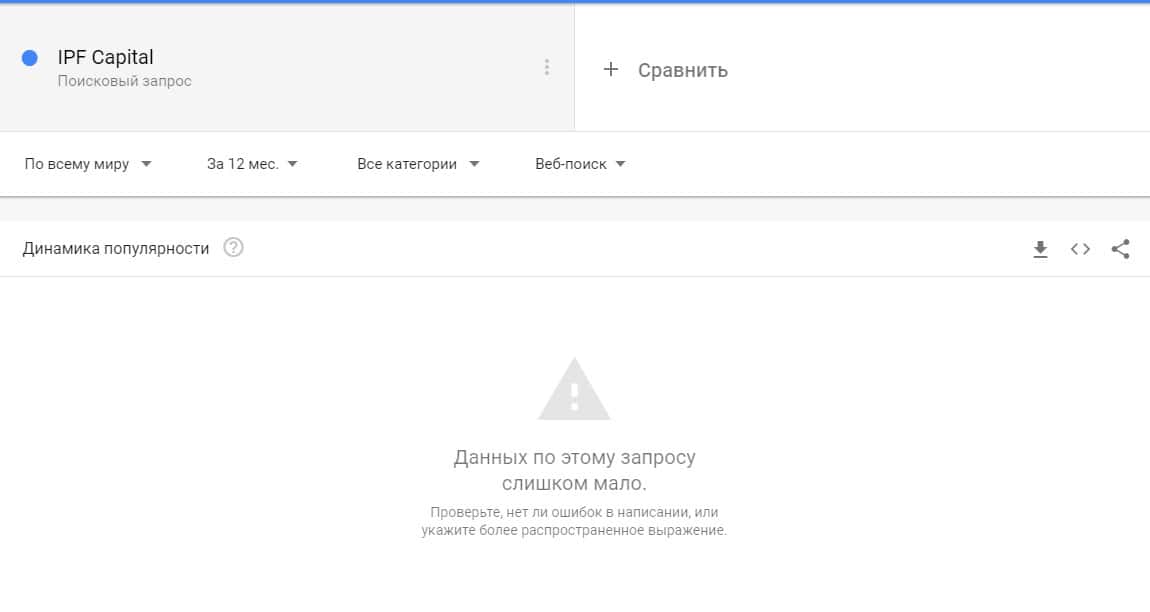 Бренду конторы "IPF Capital" не был найден ни разу, так как мошенники не популярно в Гугл по статистике Гугл.Трендс.