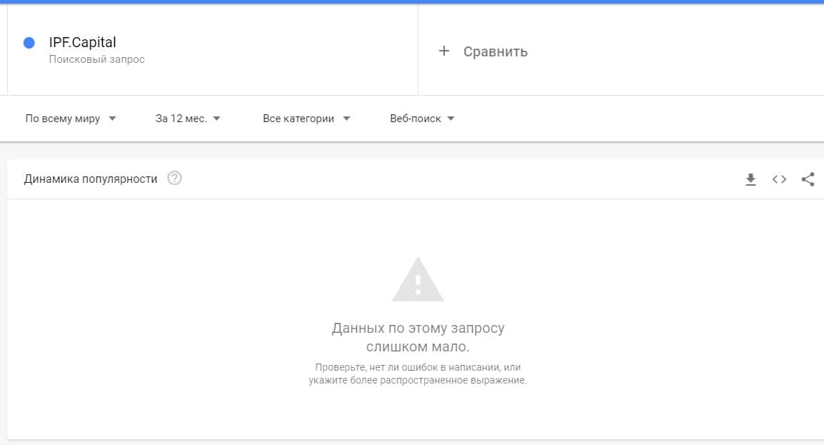 Что касается версии бренда названия самого официального сайта "IPF.Capital" то в Гугл не было найдено ни одного показа за последний месяц.