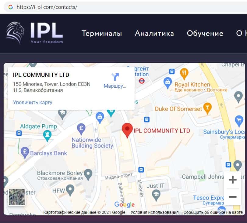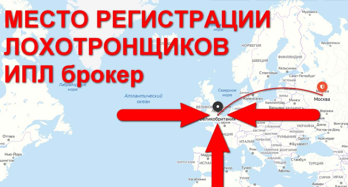 Так же контора жуликов ИПЛ брокер указала, что зарегистрирована в Великобритании, но скорее всего аферисты врут, чтобы пользователи больше доверяли мошенникам.