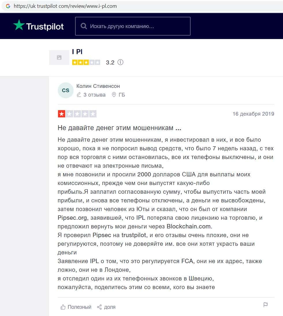 uk trustpilot com - сайт с отзывом о жуликах ИПЛ брокер