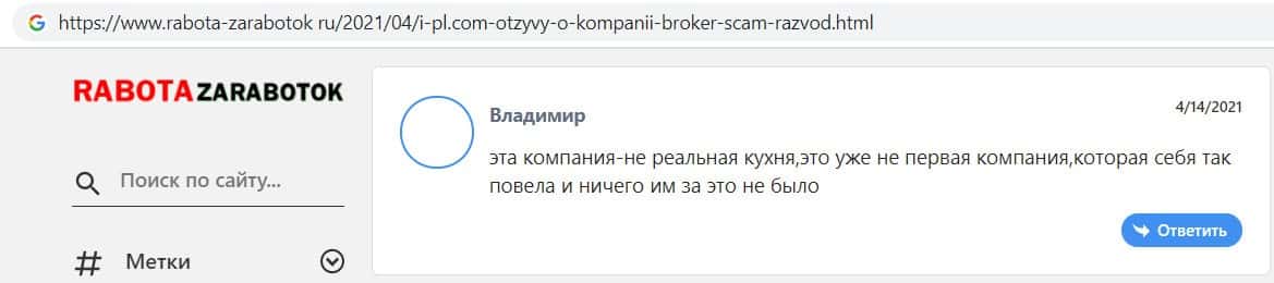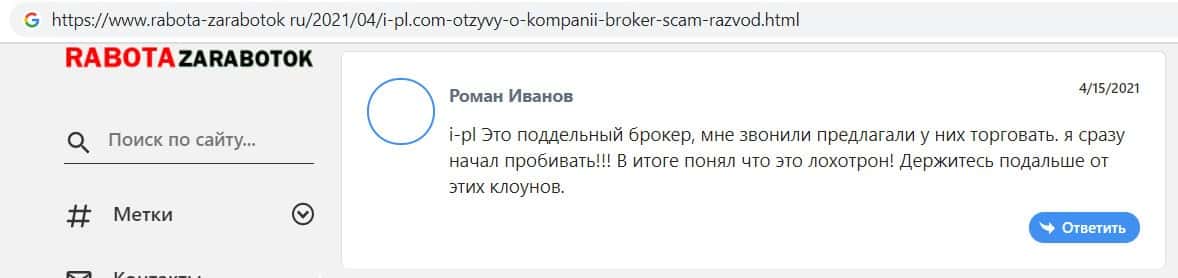 - Отзывы интернет-пользователей о фирме кидал ИПЛ брокер