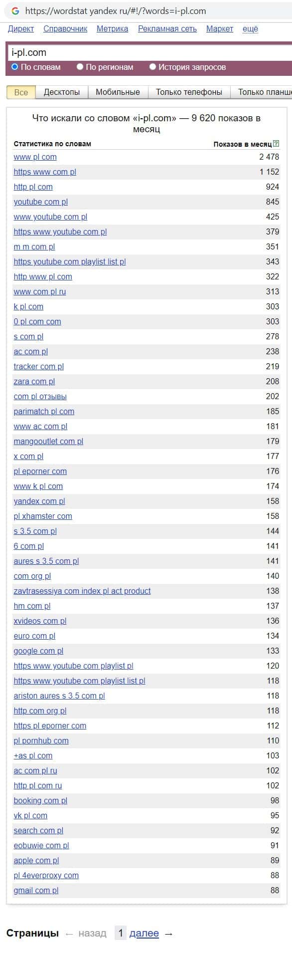 - Количество запросов шарашкиной конторы I PL в Яндексе