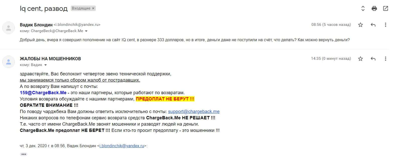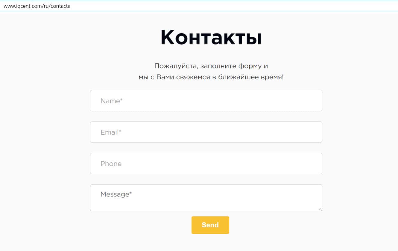 В случае, если мошенники из IQCent Вас кинули, то в такой ситуации обязательно напишите о данном факте нам. Сообщите Ваш e-mail в форме чуть ниже, с Вами установят связь.