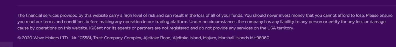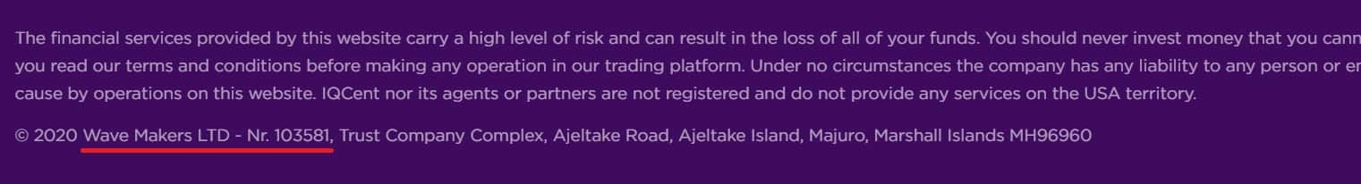 Юридическим лицом брокерской компании АйКью Цент, действующим от ее имени, является Wave Makers LTD. Информация об этом есть на сайте брокера.