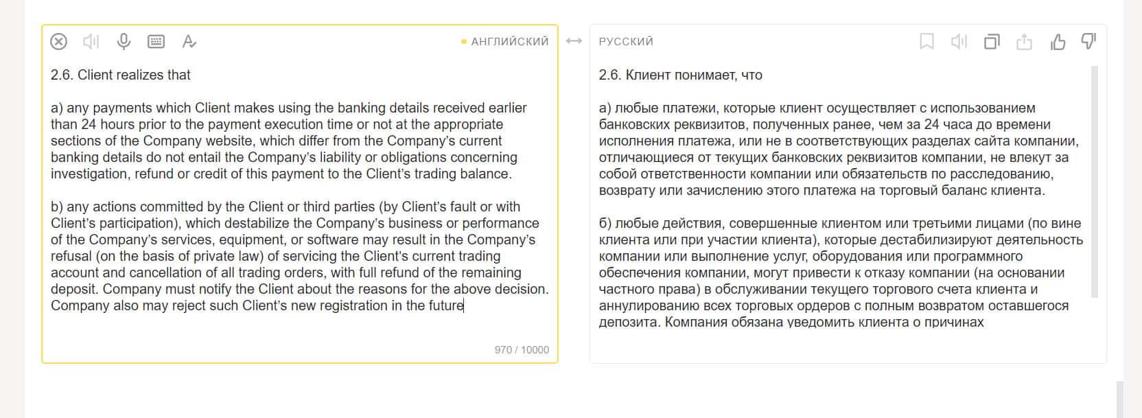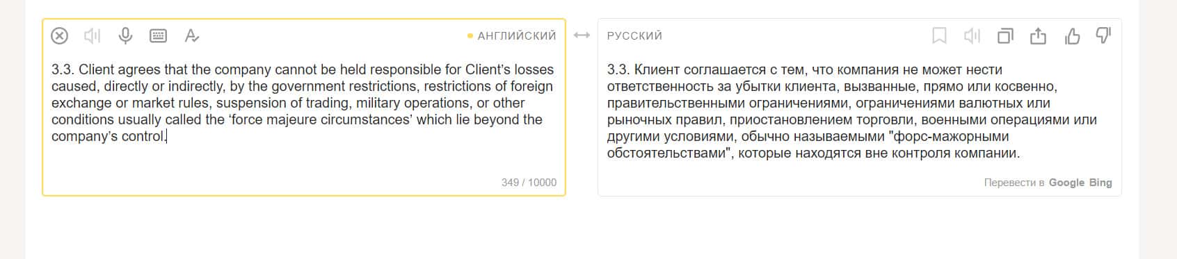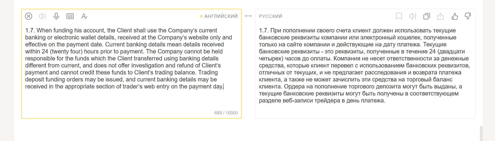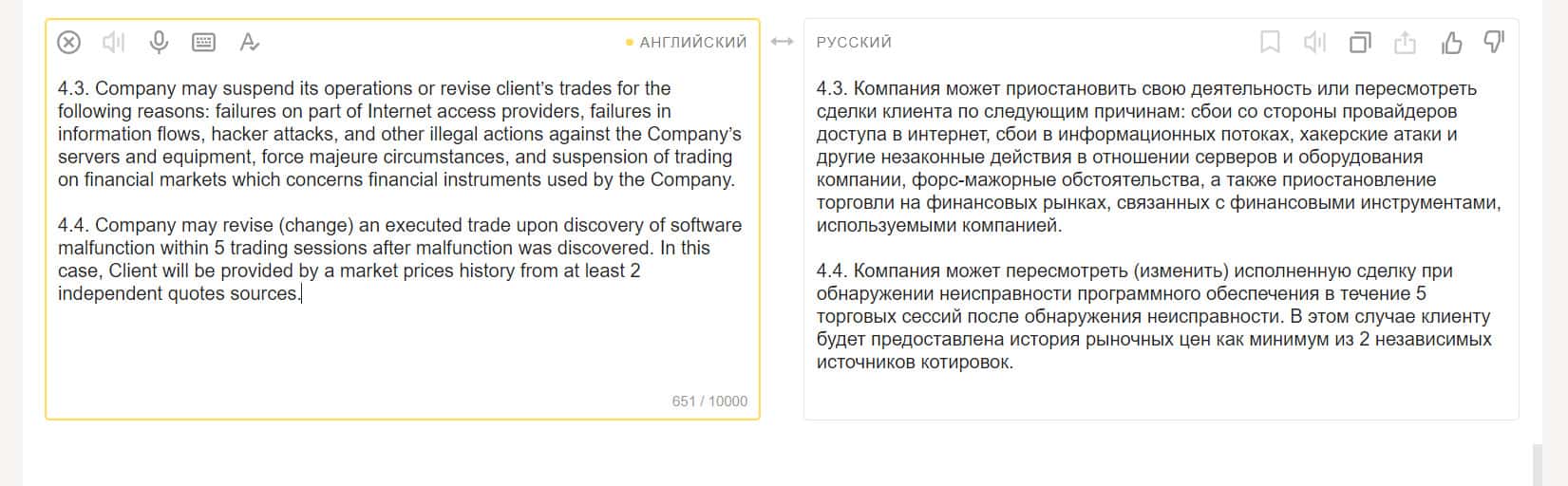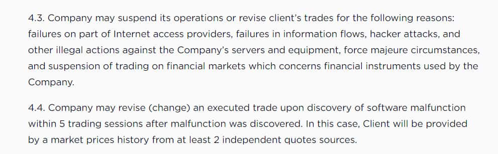 Можно сказать, что это самый важный раздел клиентского соглашения, так как в нем пользователь косвенно дает согласие на то, что контора заберет все его деньги.