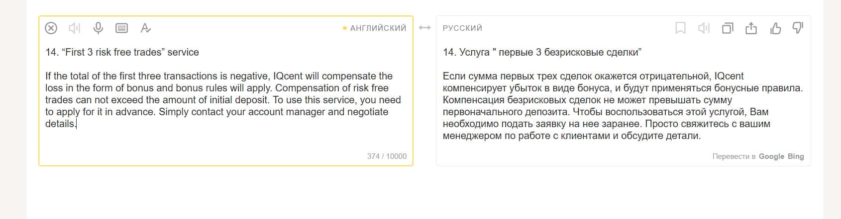 Посмотрите полный текст клиентского соглашения компании АйКью Цент на русском языке (перевод).