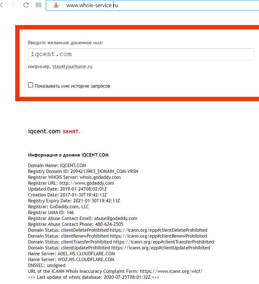 - Кому принадлежит доменное имя сайта IQCent?