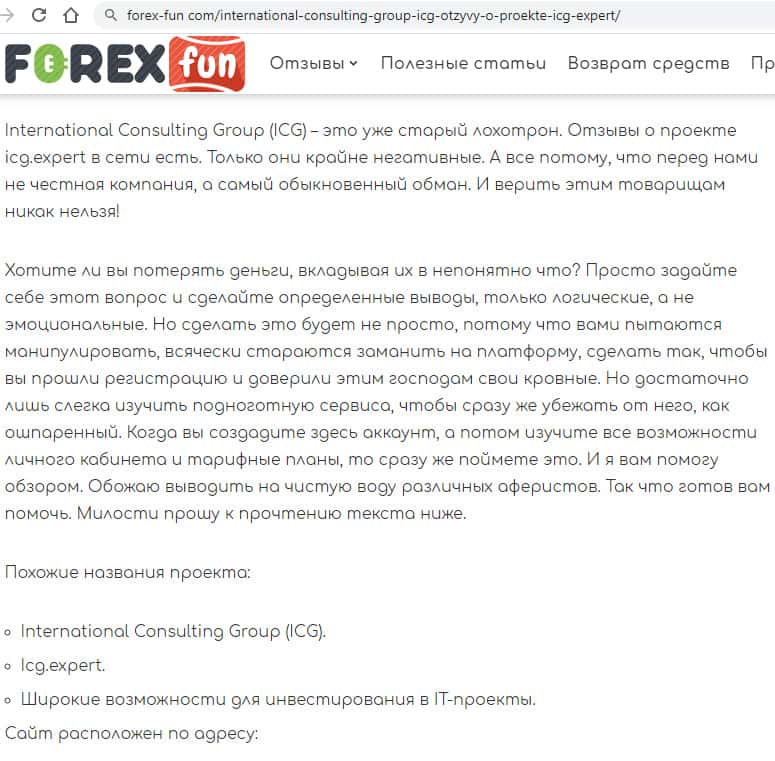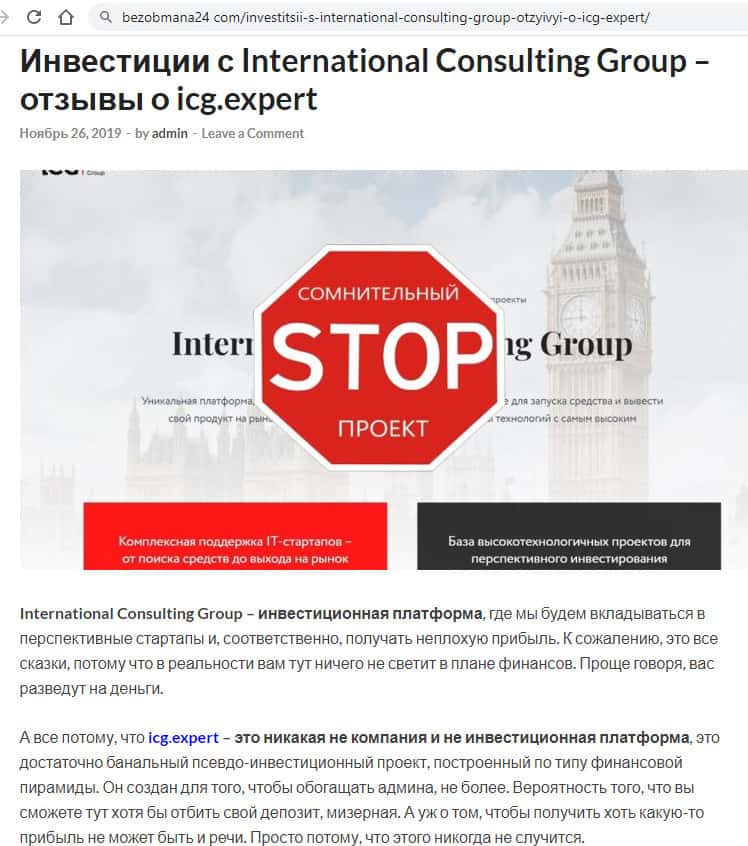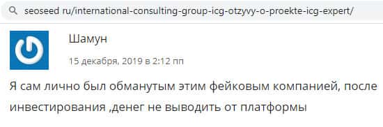 - Еще один авторитетный источник сделал подробный обзор на жульнический проект ICG Expert