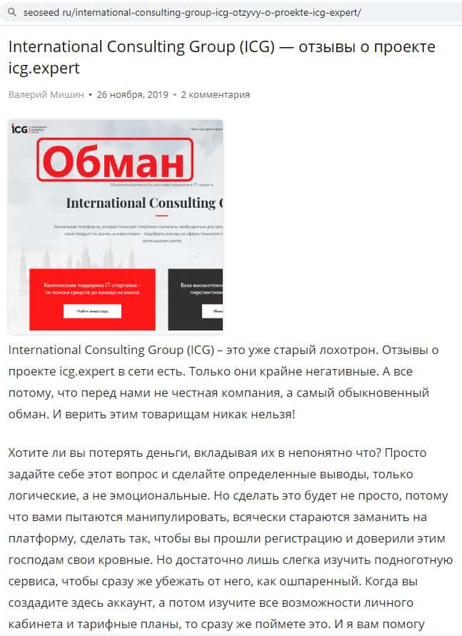 - Что думает автор статьи об откровенном лохотроне ICG Expert?