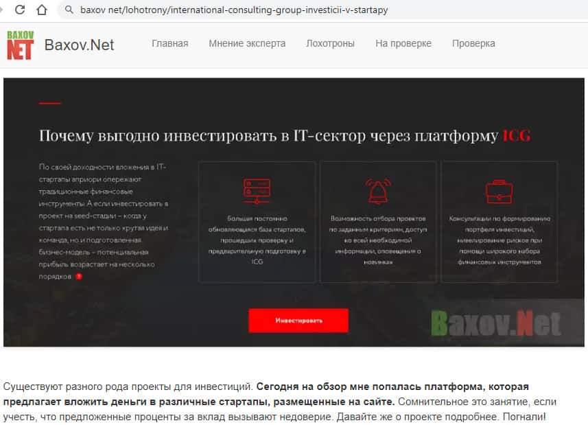 И, естественно, он тоже пришел к выводу о том, что ICG Expert - это жульнический проект, с которым просто нельзя связываться, потому что тут вас кинут на деньги. Причем они предлагают вкладывать деньги в разные стартапы, которые размещены у них на сайте. Это очень стремно и сразу же должно вызвать подозрение.