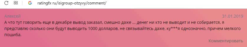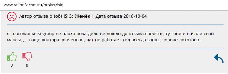 Отзыв об очередном не выводе средств из конторы ИСИГ