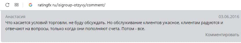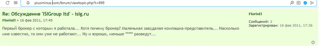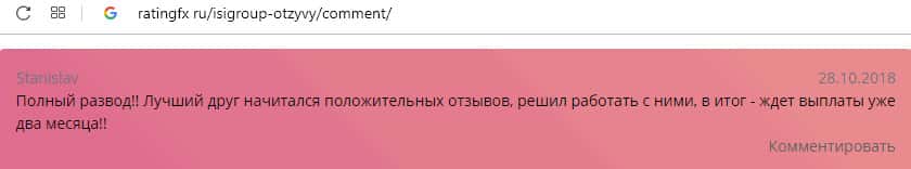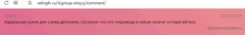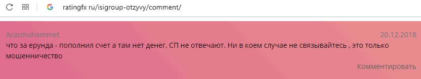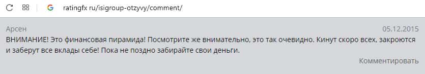 - Негативный отзыв о деятельности лохотрона ИСИГ