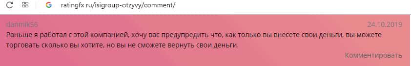 Негативный отзыв о деятельности лохотрона ИСИГ