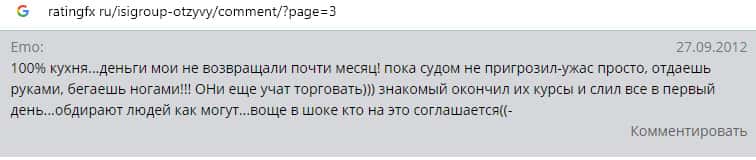 - Негативный отзыв о мошеннической кухне ИСИГ
