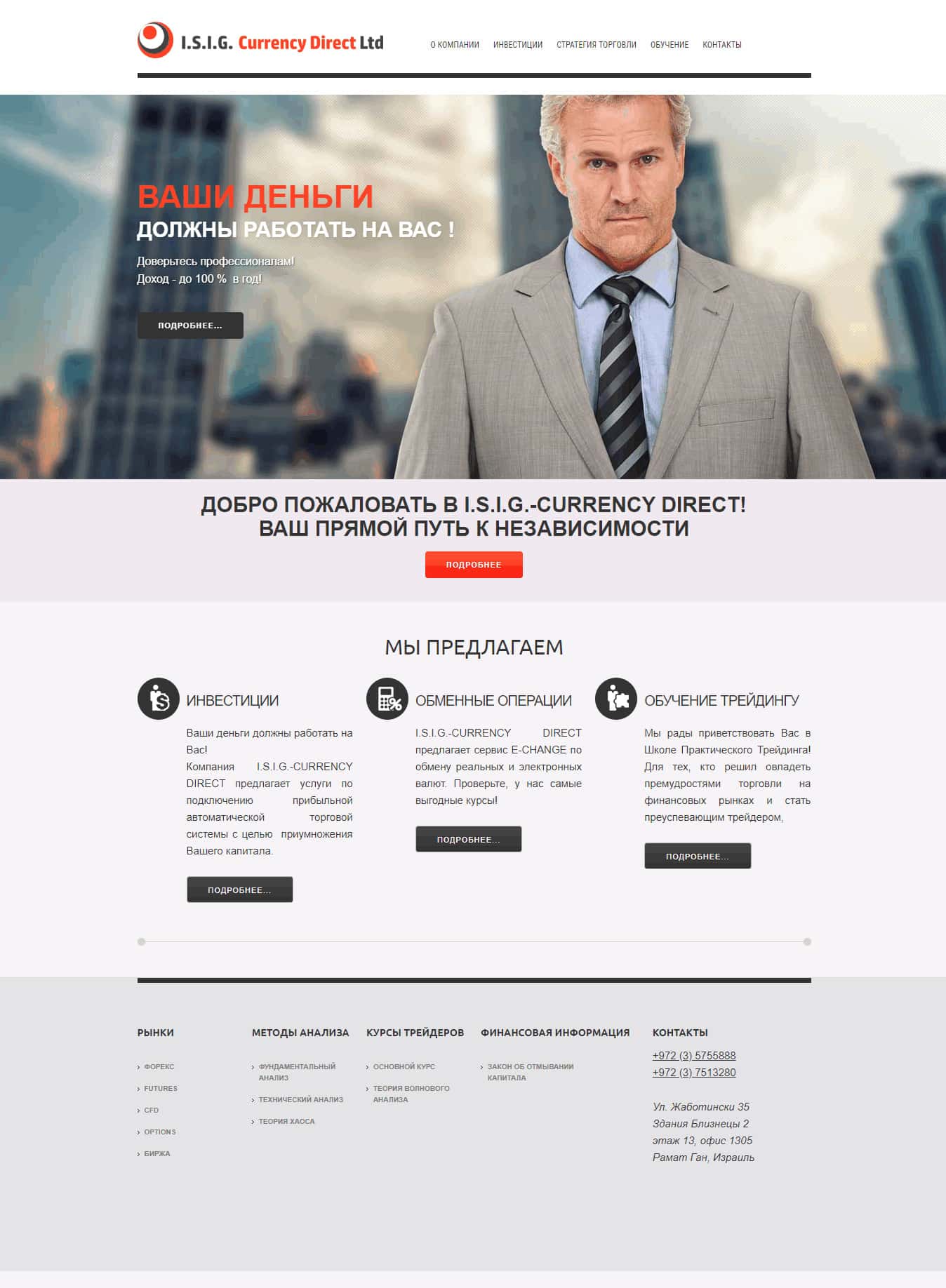 Интернет-ресурс конторы ИСИГ занимается обычным кидаловом, поэтому им нужен был простенький сайт на который могут клюнуть только недалекие лохи. Вот в принципе что мы и имеем: дешевый сайт, минимум информации и неудобный интерфейс. Опытный трейдер никогда не будет клевать на это ничтожество.