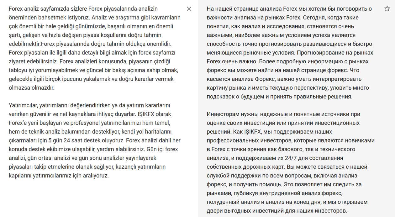 Перевод описания анализа рынка форекс от аферистов на сайте translate.google com.