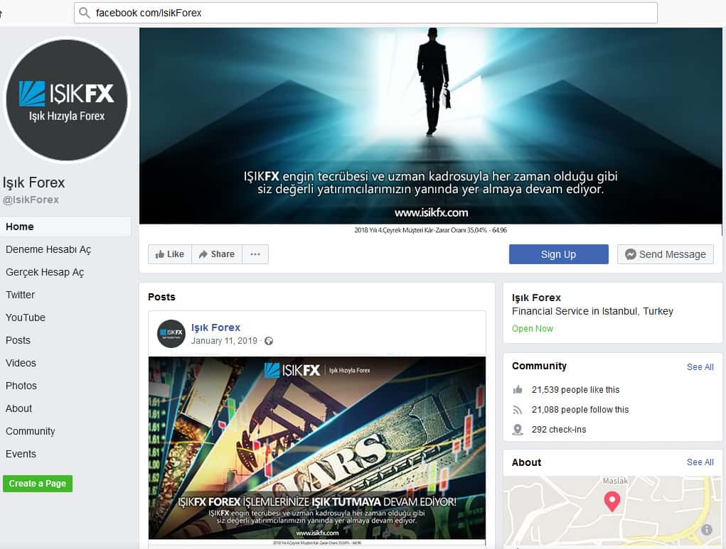 - Аферисты IsıkFX используют социальные сети, чтобы привлекать побольше клиентов в свой лохотрон
