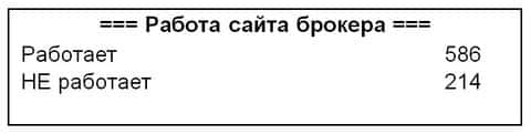 Скрин выше показывает, что из 800 брокеров уже не существует в природе 214, а 586 по прежнему продолжают кидать клиентов по мере своих сил.