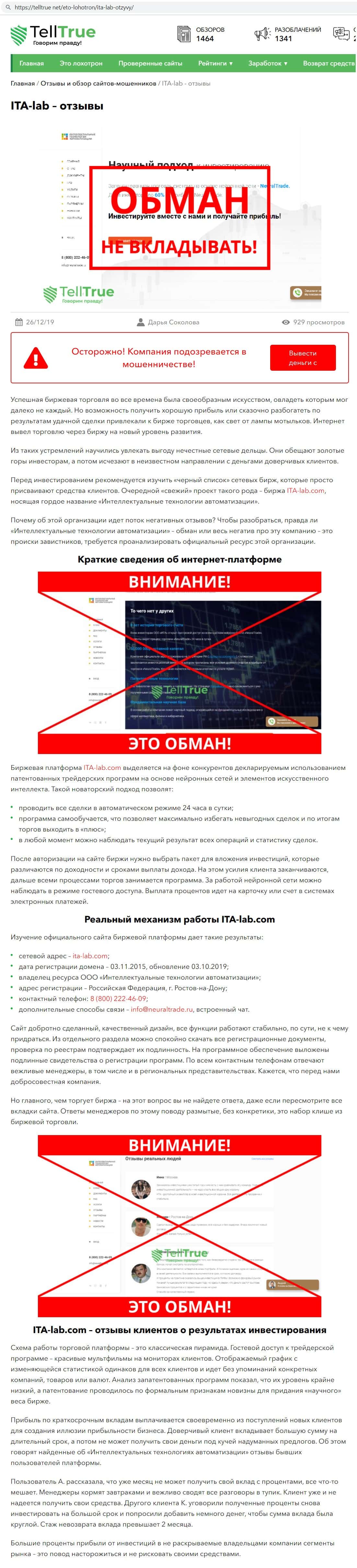 telltrue net - информация о разводилах ITA Lab