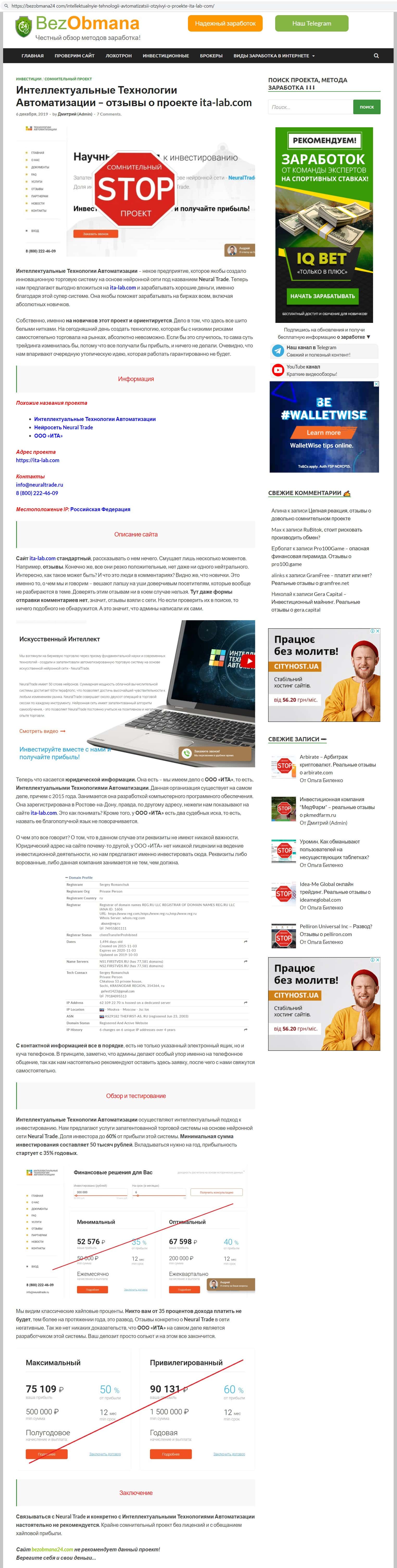 bezobmana24 com - информация о лохотроне ИТА Лаб