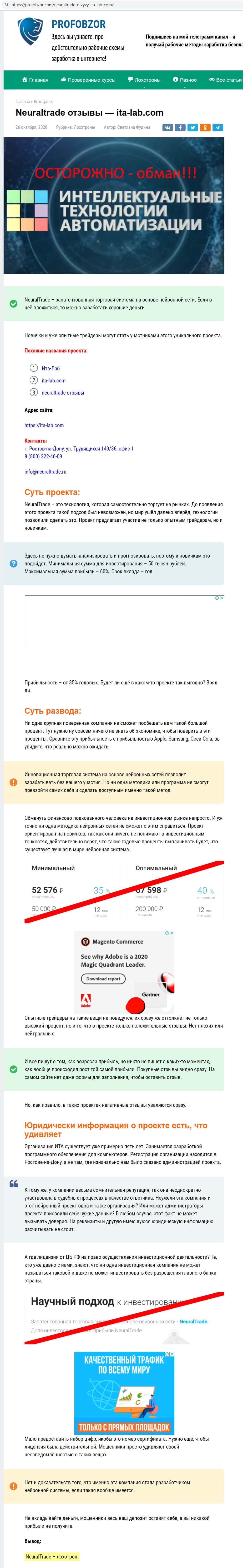 profobzor com - сайт с информацией о аферистах ИТА Лаб