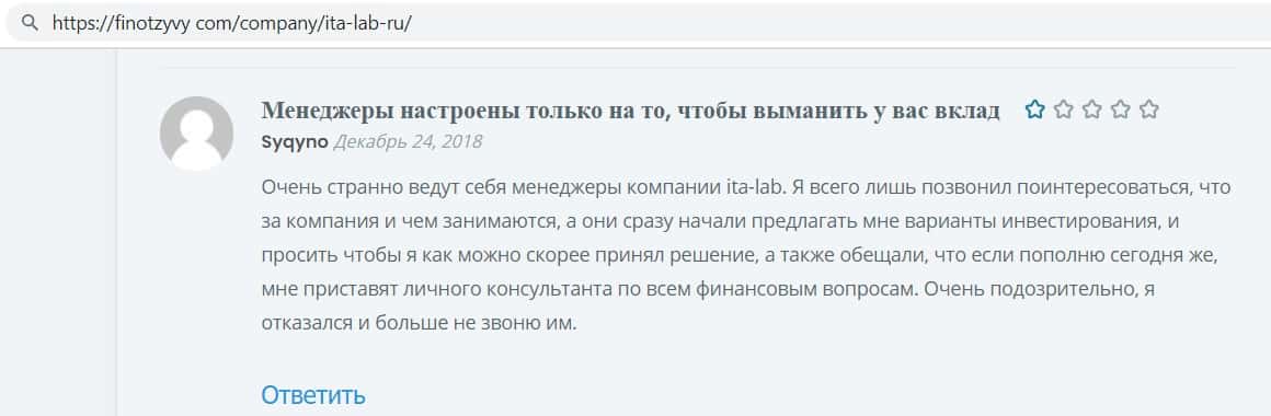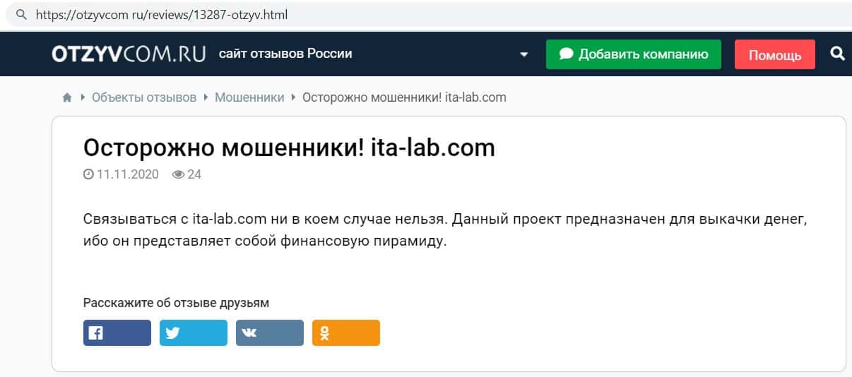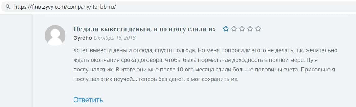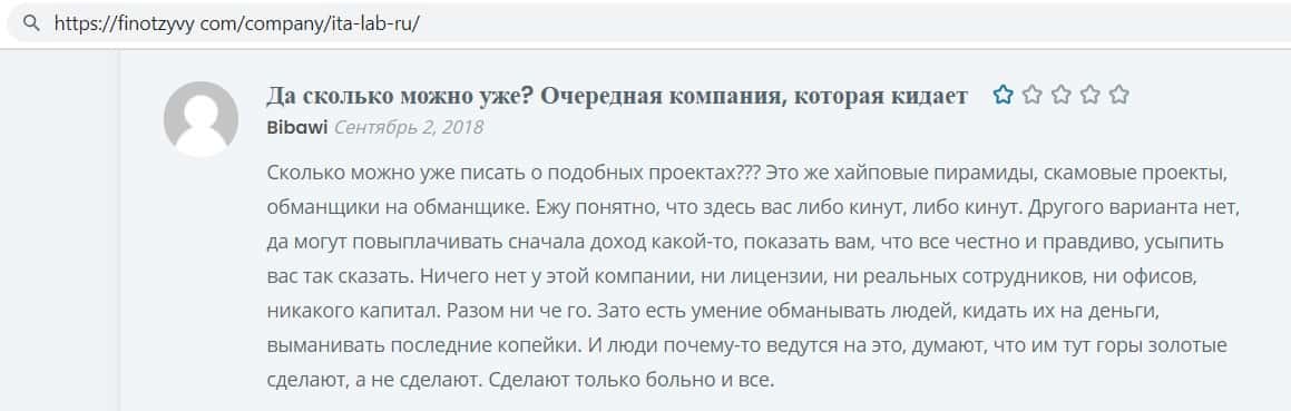 Репутация лохотрона ITA Lab говорит сама за себя
